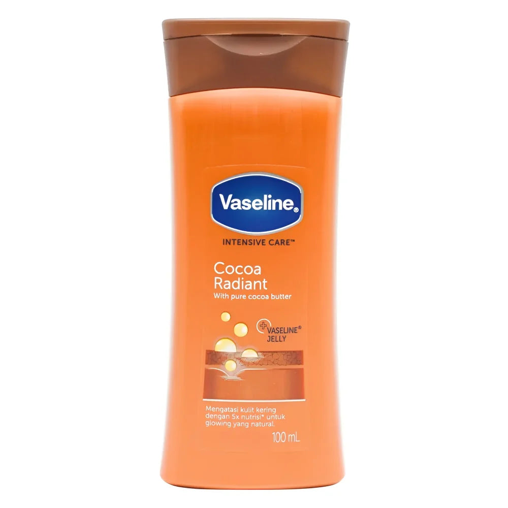 Vaseline intensive care cocoa glow body lotion, containing ingredients that lock in moisture, to work deeply and soothe dry skin to leave it smooth to the touch. It has a rich and creamy, yet fast-absorbing formula that gives your skin a boost of radiance and intense moisturizing where you need it the most. It helps restore dry, dull-looking skin by strengthening the skin’s natural barrier for up to 48 hours.